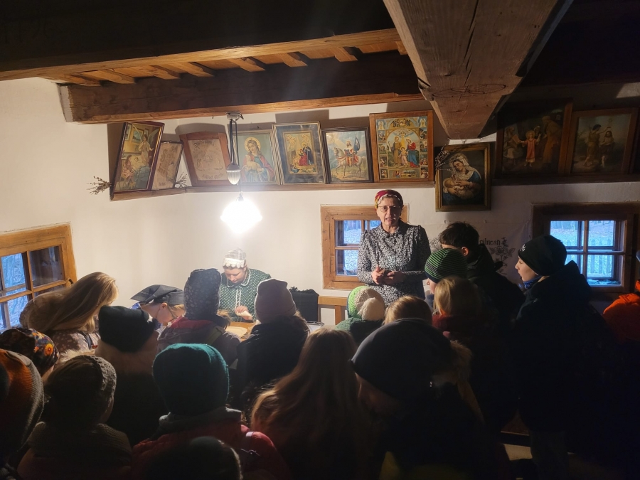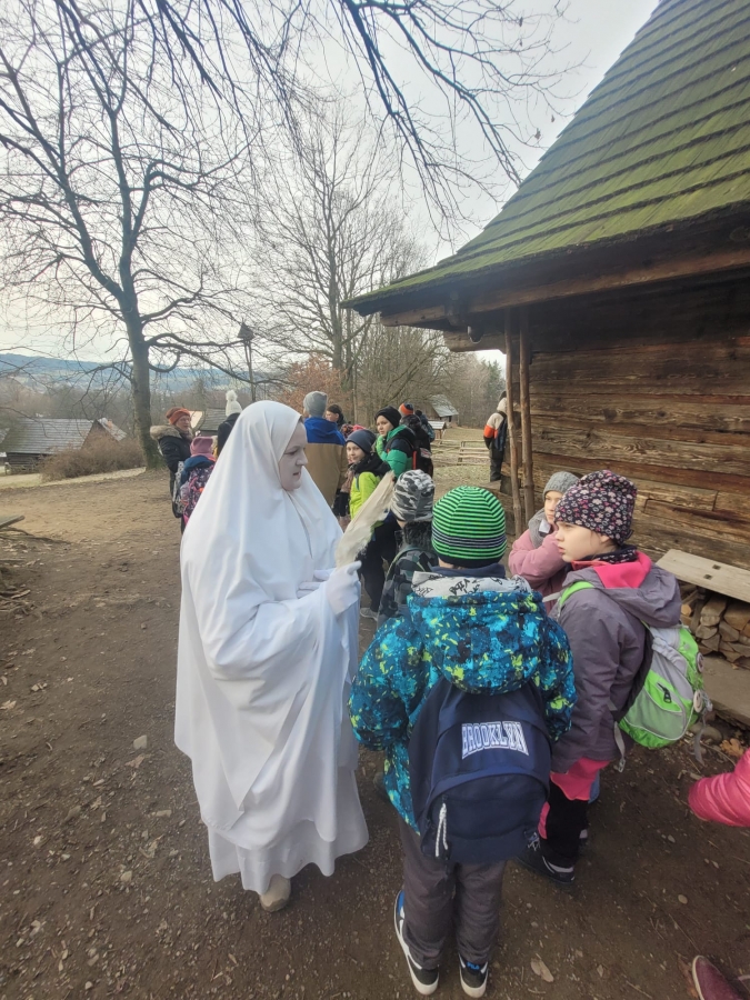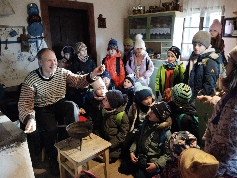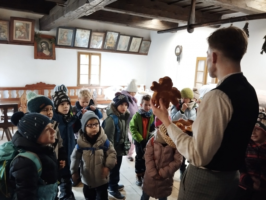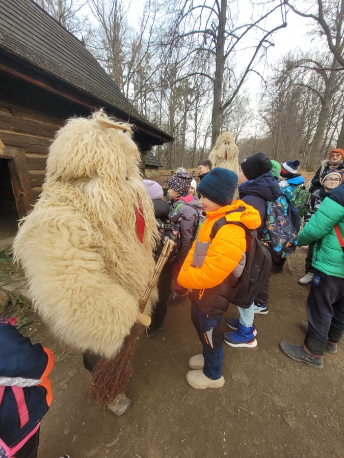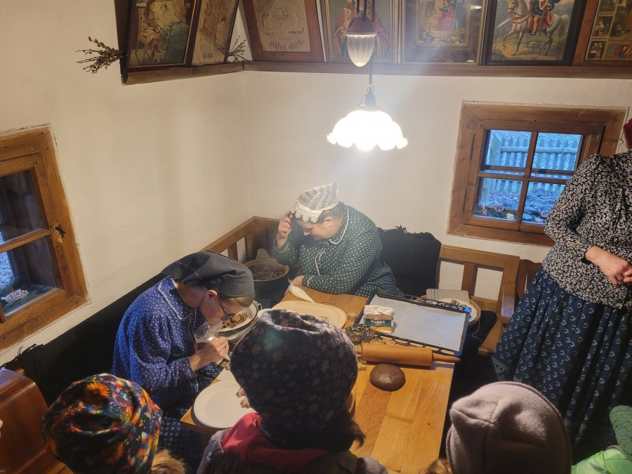 V úterý 16.12. vyrazili naši žáci do Valašského muzea v přírodě, kde celý týden probíhá program pro školy s názvem "Vánoce na dědině". Jak už samotné téma napovídá, cílem bylo poznat tradiční zvyky v období Vánoc, které se před více než 100 lety praktikovaly mezi lidmi na vesnici. To všechno bylo umocněno samotnými kulisami Valašského muzea v přírodě. Žáci se tak například dostali do budovy tehdejší školy, v domě hospodáře lili olovo a nebo pekli perníky. Bylo to příjemně strávené dopoledne s vánoční atmosférou.Poslední změna: 18.12.2025 - 13:17 Zpět